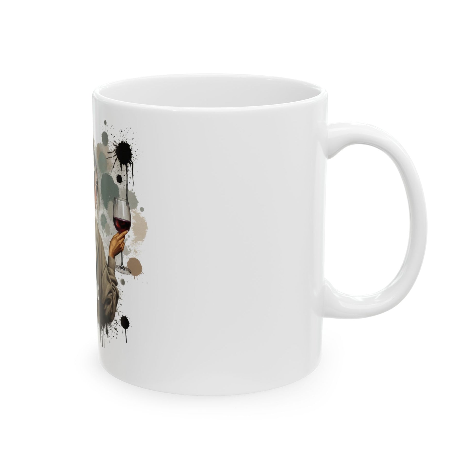 This glossy ceramic mug brings a little theatrical flair to quiet mornings and late-night chats. The artwork shows a casually confident woman with a messy bun, holding a glass of wine and flashing a peace sign a playful nod to anyone who loves bold self-expression and a wink of humor with every sip. Soft neutral splatters and painterly drips give it an artsy, lived-in feel that blends with cozy kitchens, creative desks, and relaxed gatherings. Available in two sizes, it’s built for everyday use bright, lasting colors on durable white ceramic with a comfortable C-handle and a shiny finish that catches the light just so.