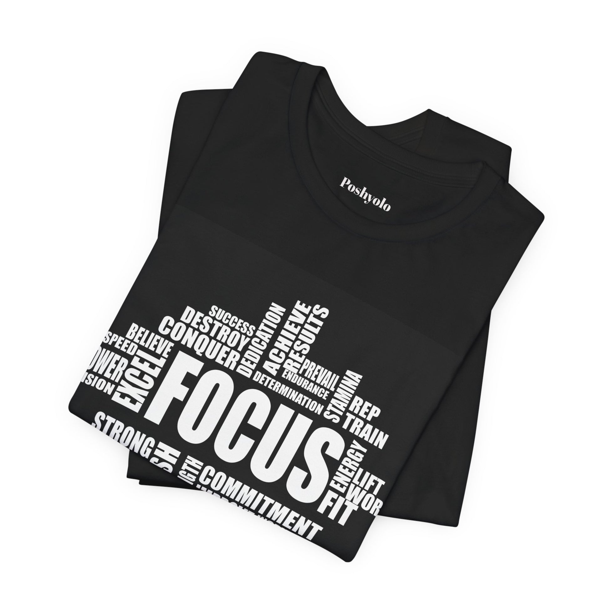 This lightweight, crew-neck tee channels quiet determination. The bold word cloud front print centers on FOCUS with surrounding words like commitment, drive, improve, and sweat a subtle reminder to tune out noise and close the gap between intention and action. The shirt’s soft Airlume combed and ring-spun cotton drapes easily for movement, while side seams and shoulder tape keep the silhouette structured after repeated wear. Wear it to morning runs, late-night study sessions, or layered under a jacket between meetings: it sits comfortably in routines that demand concentration and steady progress. The tear-away label and breathable fabric make it easy to forget you’re wearing it until someone notices the message and you both smile.